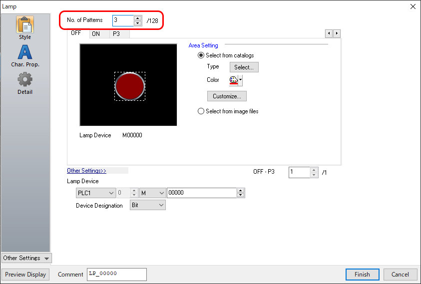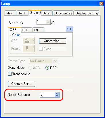 Example: When five lamps (No. of Patterns: 3) are configured consecutively from lamp device memory M0000 (bit):