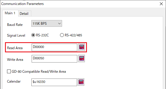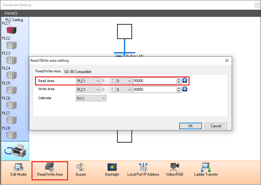 Check position: V-SFT-6 editor [System Setting] → [Hardware Setting] → [Read/Write Area] → [Read Area]