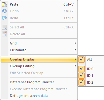 Display the right-click menu on the screen, and click [Overlap Display] [ALL] or the number of the overlap part to hide. The overlap part(s) are hidden.