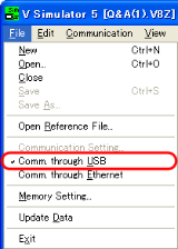 Select [File] on the simulator and check [Comm. through USB].