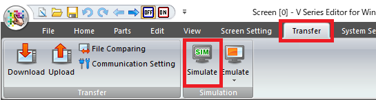 If the simulator's communication settings are not correct, the V/TS series cannot communicate with a PC properly.