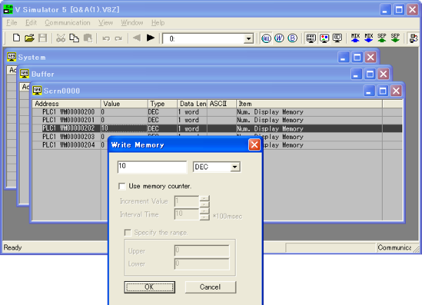 Double-click on a cell under [Value] to display the [Write Memory] dialog.