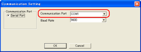 Set the COM number for [Communication Port]. Set the same COM number as that on the PC.