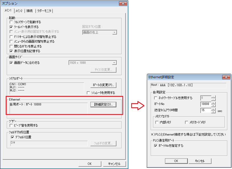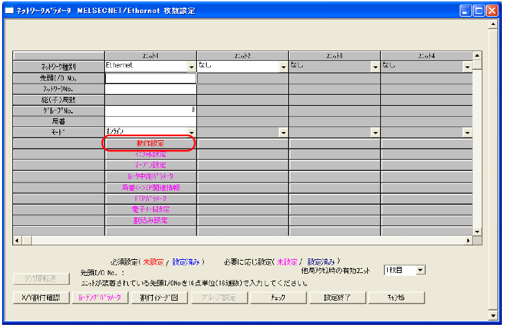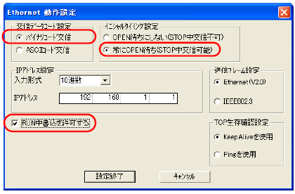 *Ethernetユニット使用時、PLCの設定で「オープン設定」によるポートNo.を設定した場合、必ずチェックします。