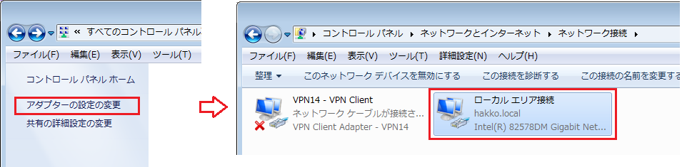 4. [ローカルエリア接続]を選択し、右クリックメニューから[プロパティ]を選択します。