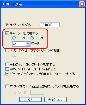 設定箇所:[システム設定]→[CFカード設定]→[□キャッシュを使用する] のチェック